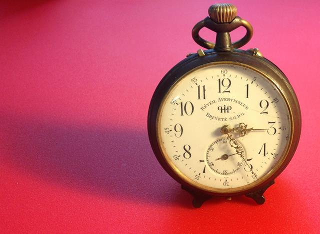 Watch 2 is a lever escapement alarm watch which I think is either French or Swiss. It has a gunmetal case and feet so it can stand safely. I've dated it to around 1900 based on advertisements for similar watches.