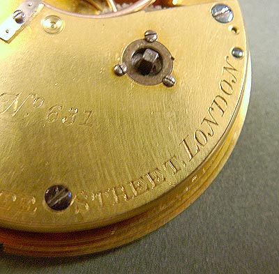 Jerry FreedmanLindell: My experience with English watches is that using serial numbers for dating is dangerous. Three quarter plate movements like this seem to have become most common about 1850. I would hazzard a guess that this watch is a later product of the maker. Remember also that the dataes given for makers in Britten are subject to questions.