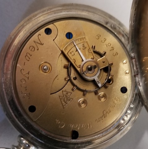 Roger J. NolfeI have an 18s watch with Grangin Watch Co. New-York on the movement. It is either 9 or 11 jewels, probably 9 that is a Swiss Fake. It is not the typical fake jeweled Swiss Fake and is actually a pretty decent looking movement. Another giveaway is an uncut balance wheel or notched and not cut all the way thru. Can't tell from Harry's picture but would be interesting to know if the balance is cut on his. On the Grangin I have the balance is uncut and the balance screws are evenly spaced around the perimeter of the balance wheel.