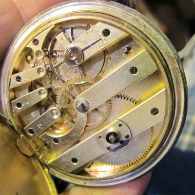 Swiss made, bar style type, 1860's, swiss lever escapement, detached lever (here the right angle lever with counterbalanced or poised lever) Case silver, inner case lid bras.
