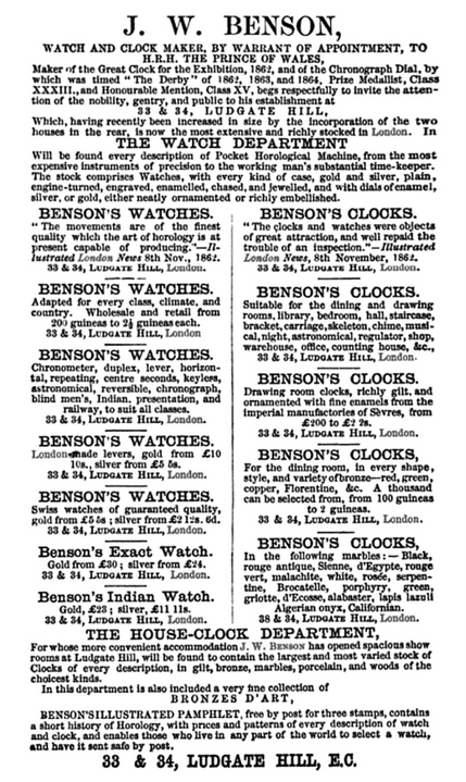 I have added an advertisement of J.W. Benson's high-end production from 1885.