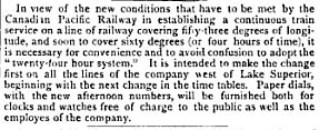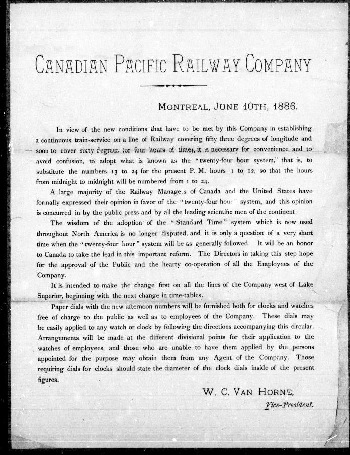 Lorne WasylishenThe initial letter from Van Horne refers to implementing the 24 hour system west of Lake Superior and in the 3rd bit of research it states:
