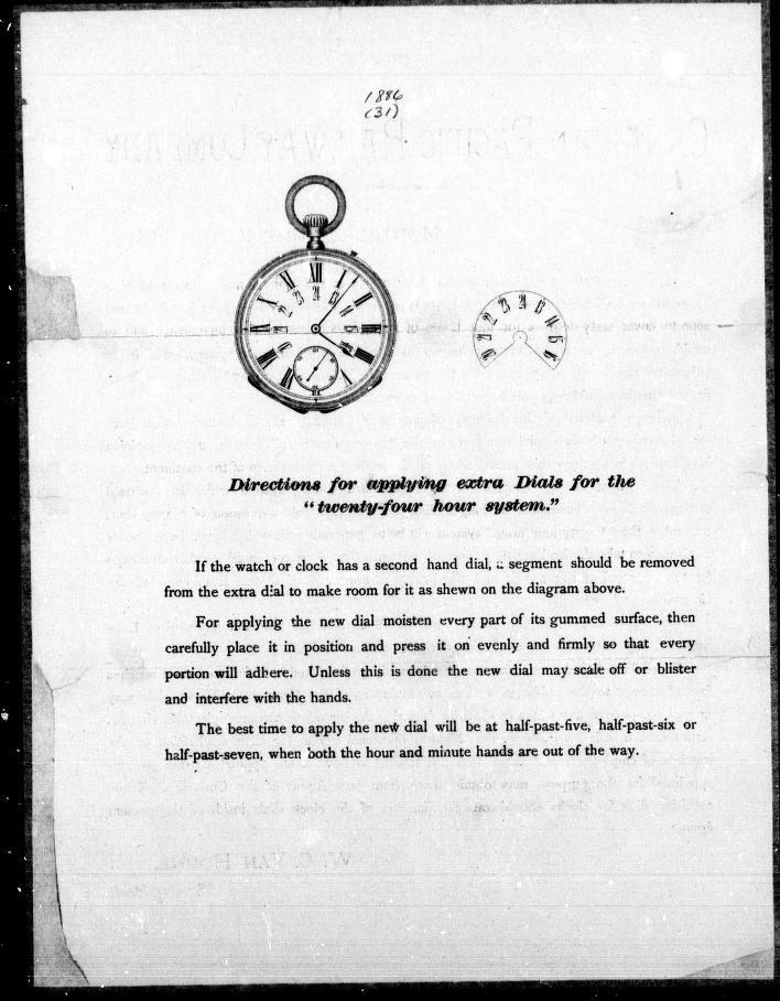 Great research, and interesting about the Union Pacific thinking of adopting the 24-hour system, I don't know if that ever happened, but I know CPR extended it east of Winnipeg to Fort William it's lakehead port on Lake Superior, and the Canadian Northern, used it from Port Arthur adjacent to Fort William to Vancouver, and the Grand Trunk Pacific from Winnipeg to Prince Rupert, when the Canadian National Railways was created after World War I all railways west of Lake Superior use the 24-hour system.