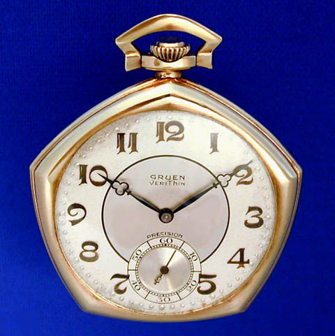You're right, many Gruens are unappreciated perhaps the fact they were mainly produced in Switzerland by an American company then cased and timed in Cincinnati, Ohio tends to blur their origins. Among my favorite Gruen pocket watches are any of those in solid-gold pentagon-shaped cases such as we see featuring movement number 526368 in the image below.