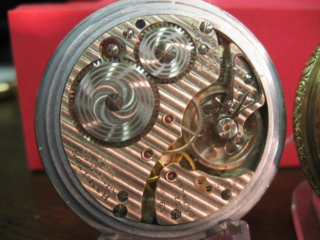While studying 2 fine Hamilton 99X specimens that will soon be carefully renovated, the thought came to mind, "What a diference 40 years and two world wars can make in these beautiful pieces of workmanship. The left one is a 992B s/n C80903 c.a.1943, the right one is a 990 s/n302058 c.a. 1903