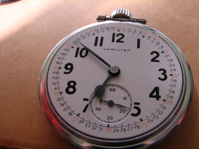 Matthew E. SuttonVery nice John. I have to admit that I have never seen a Hamilton dial with a solid outter cirle and an "open" inner circle second hand marks within the bit. What is that smaller circle in the second hand bit? Interesting.