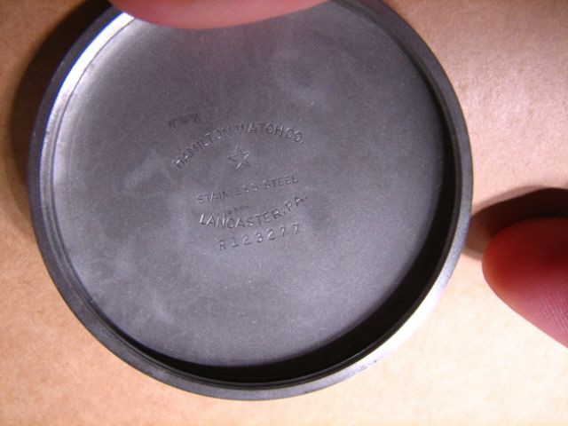 John J. Flahive IIII got the watch today. What a beauty! The condition is excellent. Here is a picture of the inside of the case back. The serial number is R123277.