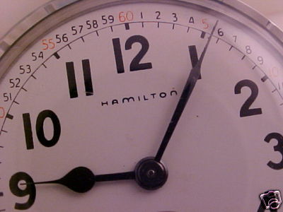 By the way, I think the time is fast-approaching when a top condition melamine dial will bring top dollar, probably more than their porcelain-enamel counterparts. After all, nothing else is correct for the Hamilton 992B and 950B from about 1950 through the end in 1970 when the last Hamilton RR Watches were shipped from Lancaster. The fading of Red 5-Minute Markers that Mark spotted is one early sign of aging as these dials deteriorate over time.
