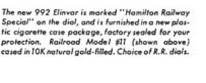 So, if the ads are inaccurate, it seems we can only rely on what we find in order to absoulutely determine what once was available. I'm not trying to say my original supposition is right or wrong based on this, but rather as it might be applied in a more general sense. In other words, something I might have could be "right", at least until proven wrong with more than what the images in the ads provide, by themselves. An example might be a late-fifties 992B in a Model 15 case that happens to have an enamel dial on it. I don't have one of these, and would doubt its authenticity if I did, but I can't say for a fact that it could not be original. That's the downside to trying to use the ads as absolute proof of what was and what wasn't, when they aren't accurate to start with. Is