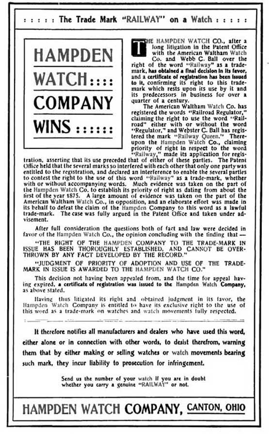 Hampden Watch Company 1901 Advertisement "Railway" on a watch...February 24, 2012, 18:50