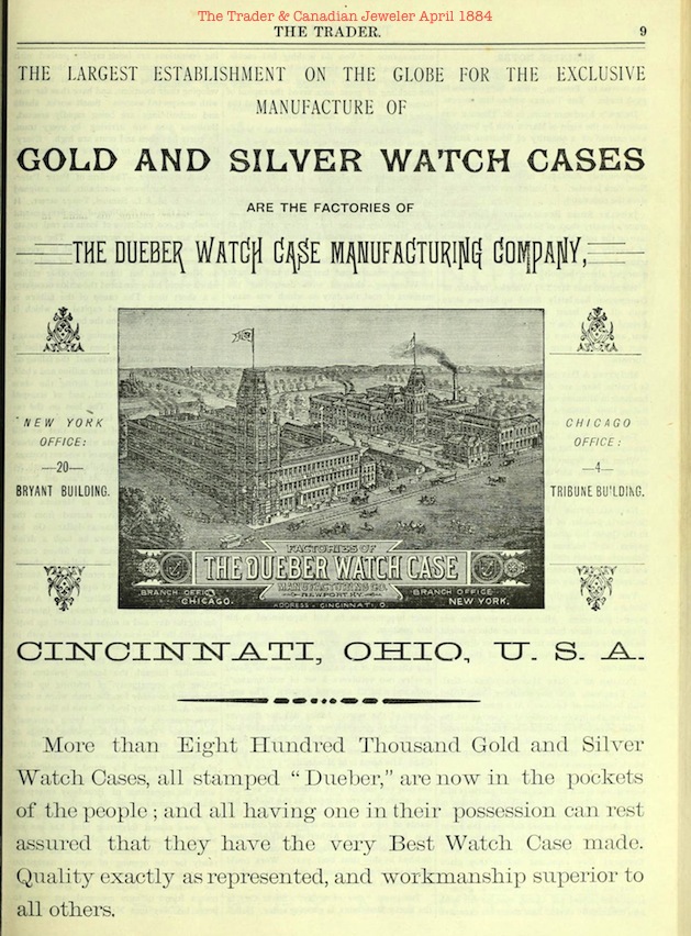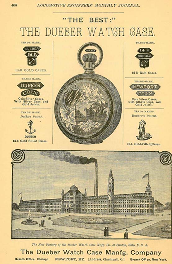 These are from the time period when Dueber case factory was in Newport, Kentucky with offices Cincinnati, Ohio before acquiring Hampden and re-locating to their "twin factories" in Canton, Ohio.