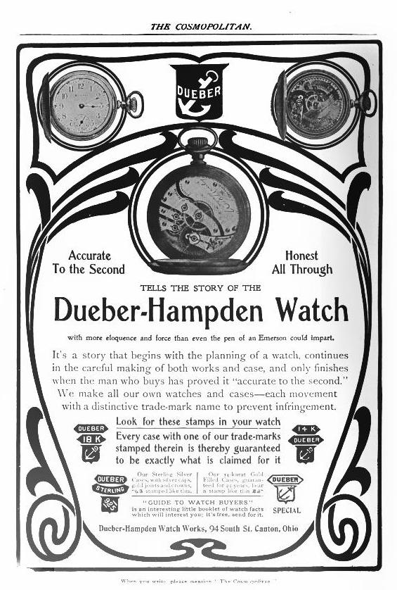 Richard RomeroHere are some more Dueber-Hampden advertisements courtesy of Google Books. To me this first page blends well with Lindells' Factory post above from a year ago.