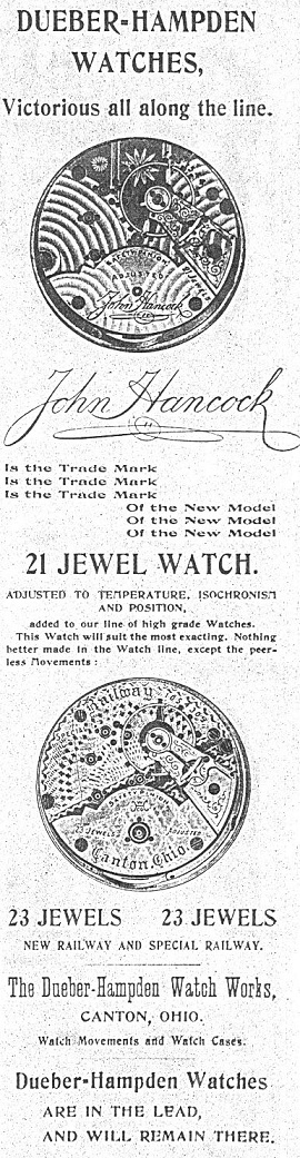 Theodore J. Brown Sr.Richard, Thank you for doing these ads, like Chris said, a lot of these I also haven't seen.I noticed a Hampden railroad grade on a few of the ads that seems unusual to me, the 16S 17J "John C. Dueber".I've seen and heard of the 21J version, didn't know of a 17J J.C.D. Really nice job! Thanks again, Ted.