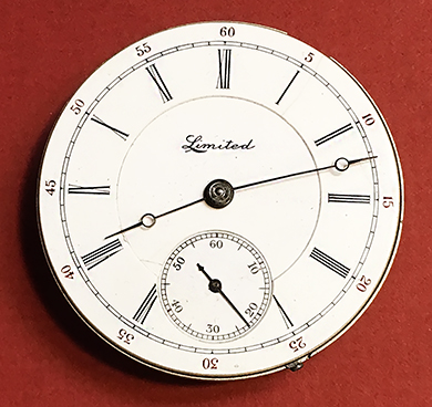I recently spotted an 18s open-face Hampden on the internet, one I've never seen or heard of before.It's a 17J two-tone adjusted with only "Limited" marked on the barrel plate, (also has "Safety Pinion" in the usual place.It has gilt screws and a Teske regulator with a gold index.Dial is a regular Hampden. I think this may be a private label but I have no idea who for.I looked up the SN, (1 mil.), only one close in serial number shows up in the Hampden book.Anyone ever seen one of these or have any info on them? Has to be a scarce watch.
