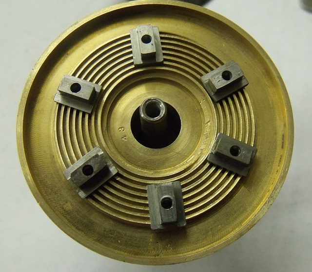 Thanks Paul for the photos and your excellent description. Mine has a tapered arbour which come out with a single light punch. The plat is marked on the back 1-6 beside each slot. Each Jaw is marked 1-6 and each scroll traveller is marked 1-6 (simple stuff). I clean and oiled and reassembled it and it was the same so I switched the 5&6 jaws and it appeared to improve the situation ?? (i know it makes no sense since jaws are the same but travellers differ!! Ran out of time but will fiddle with it a bit to see what effect moving the travellers make. Wear may be a factor but does not seem to be sloppy. Couple pics. of when apart. Notice the machining on the plate to allow a case with hinge and pendant to be mounted. ( tried it and it workd.