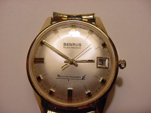 Tom HuberHere is a pic of my Benrus Electronic Technipower. Acquired it last year in an antique store for $1. Put a battery in it and it took right off. It really eats up batteries. If left on it will use up a battery in about 4-5 months.