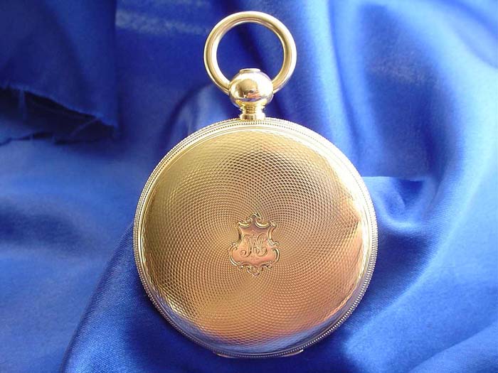 The exceptionally well preserved original case of this watch provides an additional plum. The cuvette bears a presentation date of December 25, 1862 (someone had a merry Christmas!), obviously putting the movement's production prior to this date. Since the factory records relating to this particular movement have not survived, this information is especially fortuitous.
