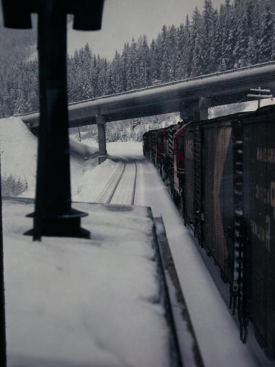Larry BuchanThis picture presentation will show you part of the daily winter operations through Spiral Tunnel No.2, the date is February 20, 1980. At this time I was a qualified locomotive engineer working as an engine service brakeman, and on this particular trip I worked the tail end with conductor Fred Ramsey. The previous evening we had worked from Calgary to Field on train #67, we were called at 18:00 and were off duty at 00:35. We had the night in bed and were called for train XT (Toronto empties) at 11:30 our locomotive engineer was Louis Hlasny, and our power was 5854, 5535, 5664, 5610 all 3000 hp General Motors SD40 & SD40-2 6 axle locomotives, quite a leap in technology from the old steam locomotives that used to work out of Field. Our trip home was 135 miles and I took these pictures from the caboose on our way east from Field, it was a good trip and we were home and off duty at 18: 30 our total of 24 hours 30 minutes. We once again had conquered Field Hill through the Spiral tunnels a distance of 14 miles to the Continental divide at Stephen. I dedicate this presentation to my father Herman Noble Buchan who would have been 100 years old today November 30, he passed away prematurely from Alzheimer's 20 years ago. He taught me a love of the Rocky Mountains at an early age when he started his mountain climbing adventures at the age of 51.