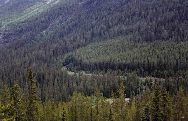 Larry BuchanHere is a photo taken by CPR's Corporate Photographer Nicholas Morant, it shows a westbound freight approaching the upper portal of Spiral Tunnel No.2 and you can see Cathedral Crags framed by the portal of the tunnel.
