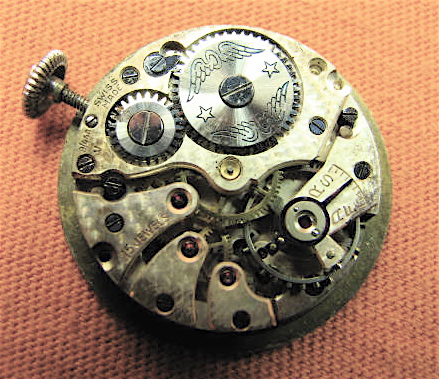 Is there anyone out there that can help me identify the Swiss company that made this movement for Weir & Sons? I spent quite a bit of time going through Shugart's Price Guide looking for the logo on the ratchet wheel, but found nothing. I also looked through a 1950 Paulson's Guide that illustrates 3500 different Swiss movements, but I couldn't find the "wings logo" there either. When I saw the wings I immediately thought of Breitling, but they don't have an "O" between the wings. Above the winding wheel along the edge there is also the numbers 8/440 and a "V." Any help as to identity and approximate year of production would be greatly appreciated.