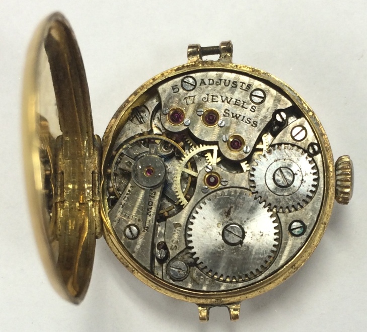 A friend of mine was dealing with his mothers estate when he found a small 18K ladies wrist watch. I have attached a photo of the movement. It is marked 5 Adjustments, 17 Jewels and Swiss made. Does anyone recognise or have any ideas as to the maker of this watch? There are no identifying marks on the case other than 18K and about 15 service numbers scratched from previous watchmakers.