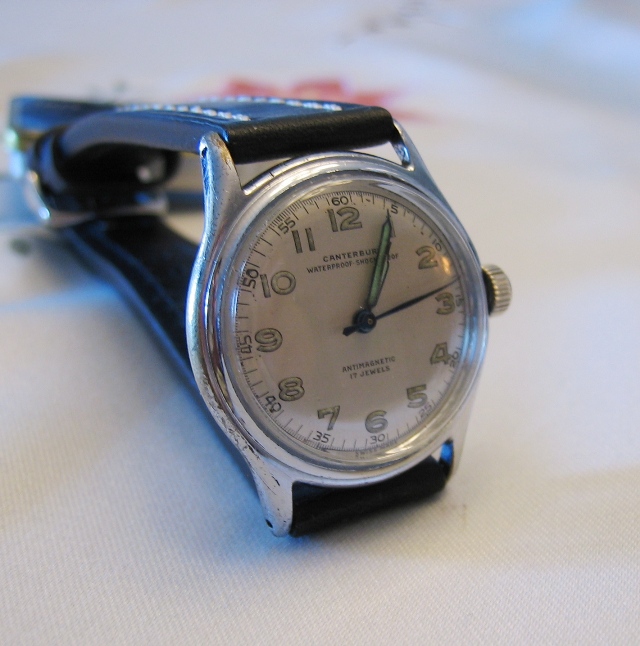 Adam M. DubinOkay, for doing Saturday chores I need to wear something different...This is a Canterbury Swiss-made military style watch which I bought from a dealer in the UK. It's a real work-horse and keeps very accurate time. I just put on it this new Hirsch Liberty strap.