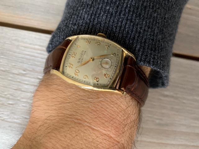 Dave KeefeHi Mike, not that I've seen Jimmy Stewart wear this, but to me it is evocative of the feel-good gold-old-days. I love your curvex, Gruen Precisions are the way to go