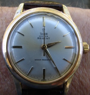 This is my latest wristwatch acquisition. It is 9C gold, and has a metal dial with raised gold-colored chapters and minutes ring. The dealer I bought it from said he bought it from the original owner who was a WWI vet. Except for the patina on the dial, the rest of the watch is pretty much like it left the factory. The fluting on the bezel and back cover is sharp and well defined, and the threads on the case tube are perfect (that is often a problem area on these old Rolex Oysters).