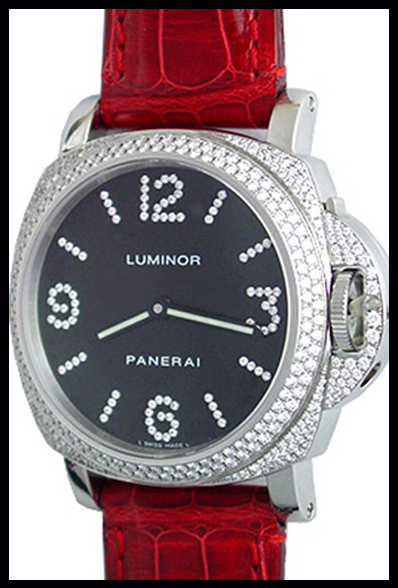 I think it's a cultural thing, not really personal preference. In western culture it is not masculine to wear lots of diamonds, as we all know, but a wristwatch (especially just for evening dress) gives that wealthy extrovert male the chance to show off. This is definitely not a ladies' watch, and you might be surprised how big it is. Panerai have built many varieties on this basic model for many years now ... it's quite a trademark, especially the wind-lock that you see on this one.