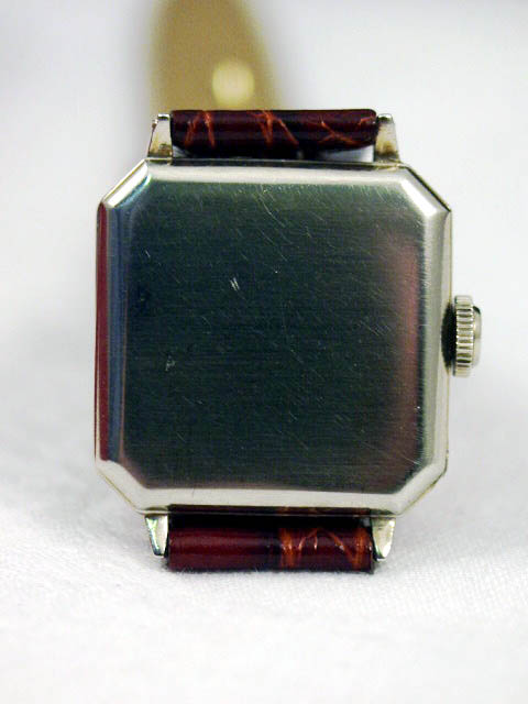 Thanks so much for starting this topic. Attached is a photo of a watch in my collection. It is solid white 14K gold "enameled" square with the seconds chapter at 9:00. I don't have photo's of the movement and back, but could take them if you have any interest.