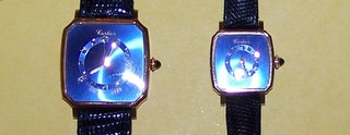 Could someone please tell me how to go about finding information on a his & hers matching set of 1978 Cartier "Diamond Jubilee" watches? They were given to Ford Lincoln Mercury Dealers with the highest per cent accomplishments. I'm wanting to price them & don't know if a jeweler could help me or, if because this was a special watch set, if I need a specialist. The watches are engraved on the backs & the fronts have the dates 1903-1978. The finial has a sapphire & the gold is 18K. I don't believe the men's watch was worn but, the ladies was. The watches belonged only to my grandparents. Thanks.