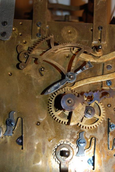 John ArrowoodWhat does the movement do on the quarter hours? If all the gizmos on the front control the hour strike what does the third train do? There appear to be a bunch of pivots and arbors on the right side.