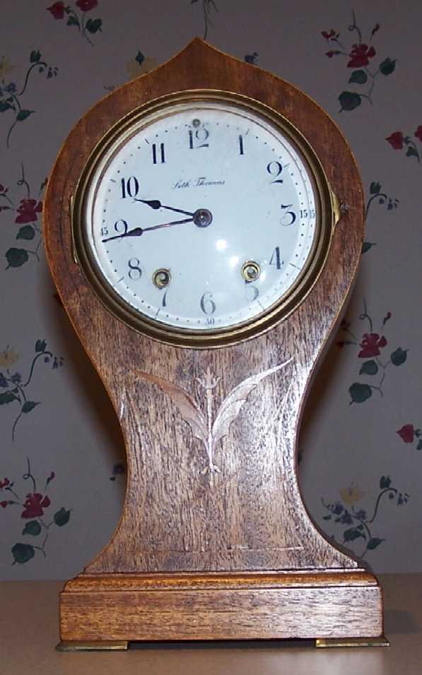 I have a Seth Thomas balloon case clock that I am trying to date. The photo is not as good as I would like but should suffice. The case has some good inlays. The movement is the round type and is mounted in the case by two straps in the French style. I got some Tran D. Ly books for Christmas but this clock was not in them.