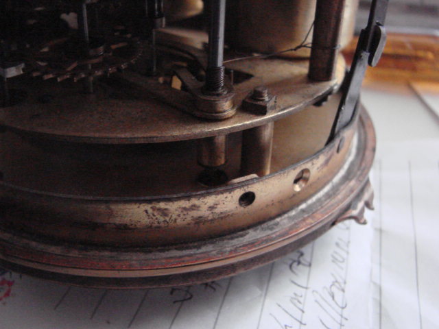 As you can see this plate has been really hacked up by mounting a replacement movement to it.