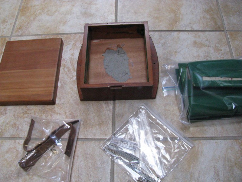 Also the complete upper lid cushion, lower pad felt and 4 wooden quarter round inserts to hold the Plexiglas that were offered in the previous post are now spoken for and unavailable. Regards to all!