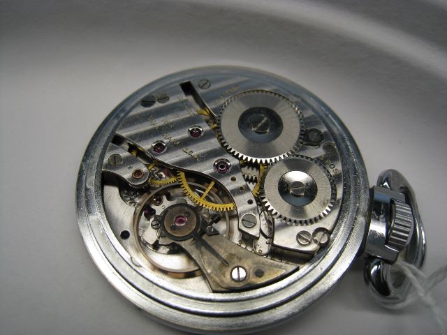 TOTAL PRODUCED and produced May 1944. The run it was made in started with 31,788,001 and ended with 31,793,000. It is pendant-set with the "hack feature". It has the center sweep seconds hand with a 24 hour train and dial. It was based on the Model A 16A and used the same "half whiplash" regulator as the Vanguard.