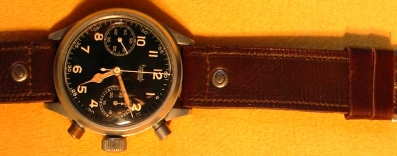 Here is a picture of an original Hanhart strap in as new condition. Also interesting to note on this watch is that the red reset buton is not painted as generally always assumed. ![]() | ||||