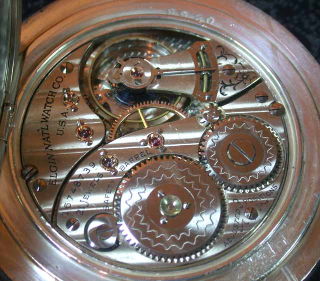 Edward L. Parsons, Jr.Thanls Tom, I love all the Elgin 18S up/down indicators with the exposed differential wheel (the little pinion that runs off the crown wheel). My other 18S Elgin up/down wind indicators are a 19-jewel Grade 240 B.W.Raymond (movement #14739778) and a 23-jewel Grade 214 Veritas (movement #16602135)