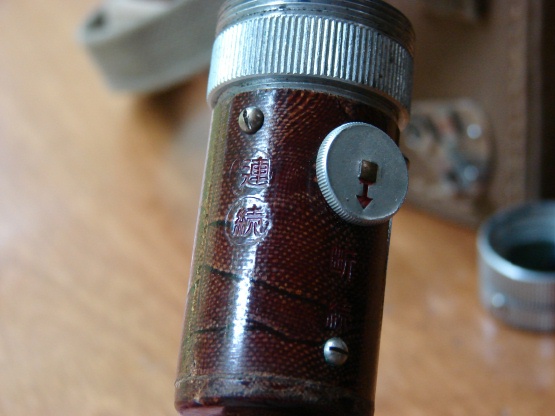 Here is an example of the WWII Imperial Japanese clockwork signaling flashlight. It is entirely powered by a heavy clock spring geared to a dynamo generator. It will function for nearly three minuets when fully wound, thus dispensing with the need for flashlight batteries. The operator may keep winding it periodically for a continues light source. The side of the case has a switch to lock the clockwork so that the unit can be kept fully wound and ready. In this image, the crank is folded and the lighting unit stored under the flap.
