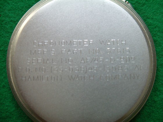 I would love to assume that all numbers under 420 are in the original batch ordered by the Army Air Force. But how would the rear case information play along with that idea. Given that both our rear case lids give the order date of 1945. Hamilton started making these chronometers for the US military in 1942..correct?