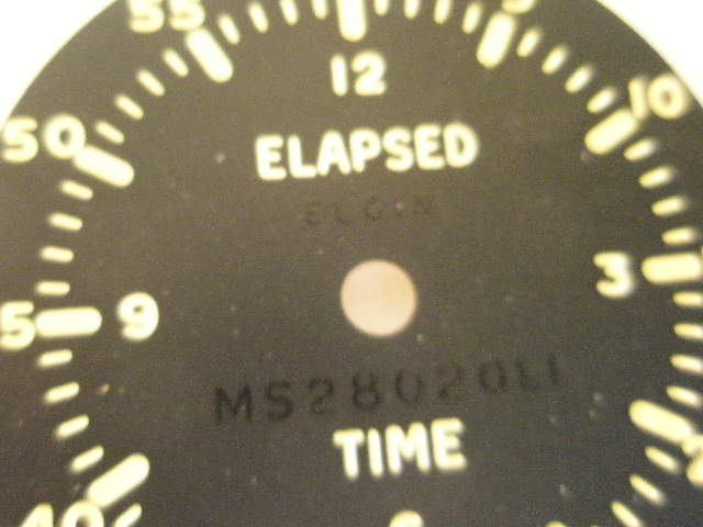 51A45A1-1 Elgin elapsed time clock dial for use in military aircraft , clock is 1 7/8 inch in diameter...