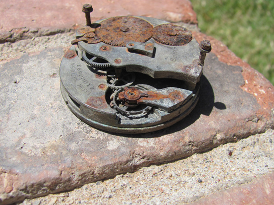 I have a few other interesting parts from this Fortress crash and have been wanting to display them in a shadow box as Greg mentioned. Excellent idea to place this clock next to a period one for a 'what it used to look like' comparison. Which bring me to another question or two- is this an Elgin A-11 or 5743? What does the '562' engraved on the movement mean? I tried an internet search but could not find much.
