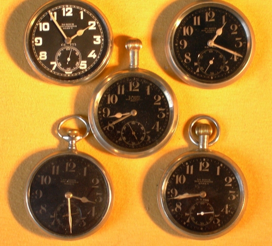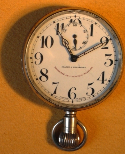 On the Allion a Versailles watch, I have seen several of these over the years and each time they were represented as being from the balloon section of the French air service. I have seen them in both average size and over-size pocket watches. I don't know the reason for the two sizes, but one completely unsubstantiated theory I have been mulling over is based on the fact that the firm "Allion a Versailles" was one of the companies that provided timepieces to the French air service during the war but they apparently were not a watchmaking company themselves. Their movements were Swiss-made from more than one maker - some who signed their movements (like Doxa) and some who did not. Allion a Versailles was a company that mounted these movements with their own cases and dials and provided them to the French air service under a contract. I am thinking that it might have been possible that the two sizes could have been due to their buying movements from more than one source and that was all that was available. Or, I may be all wrong and it could be something else entirely such as one size being for use in the balloons while the other was for use by officers on the ground, or ??? I wish there were some kind of good reference book on French air service timepieces that would clear these mysteries up.